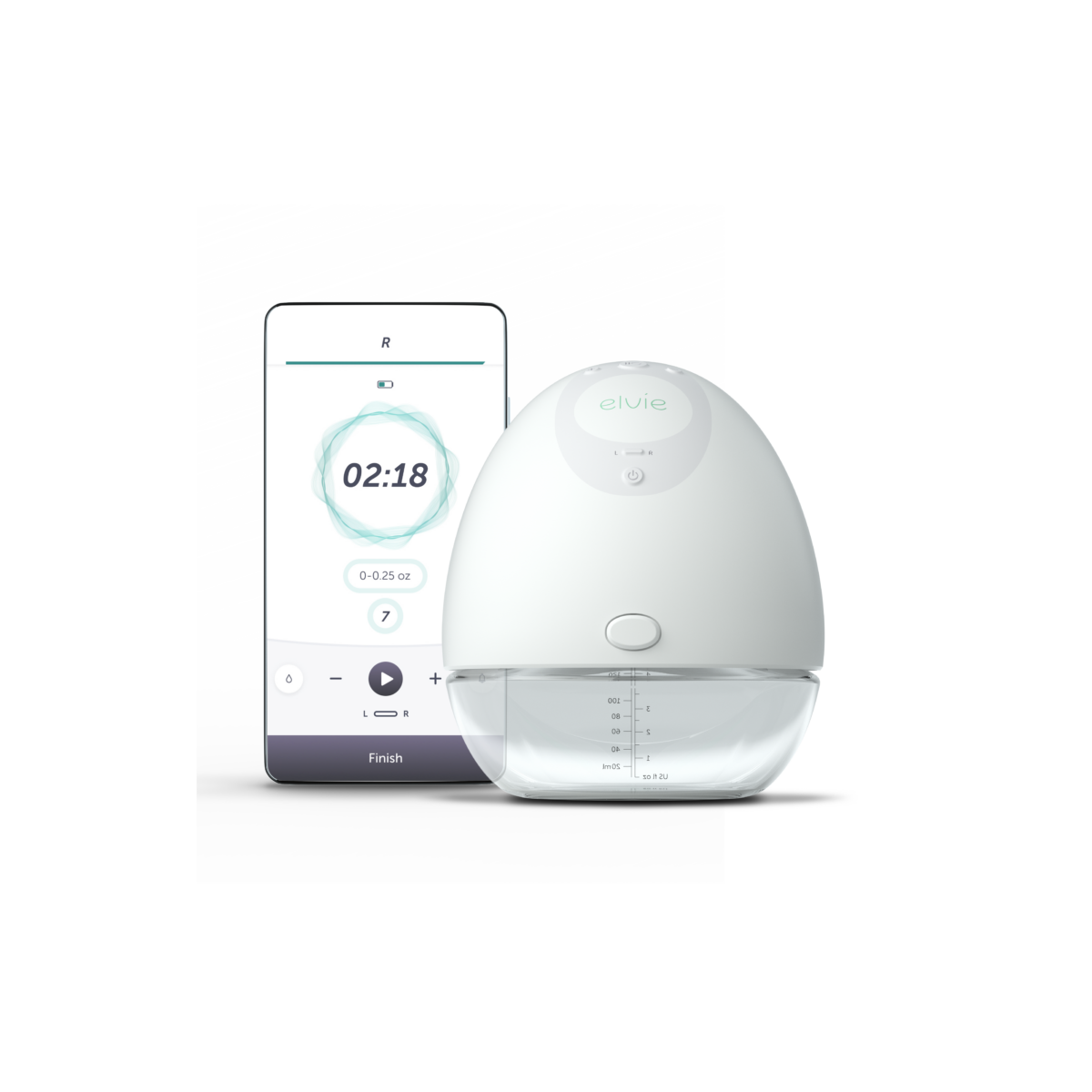 Connectez-vous à l’application gratuite Elvie Pump pour surveiller le volume du lait en temps réel, suivre l’historique de tirage pour chaque sein et contrôler le tire-lait à distance. Disponible uniquement sur iOS. Bientôt sur Android. (Elvie Pump fonctionne avec ou sans l’application).
