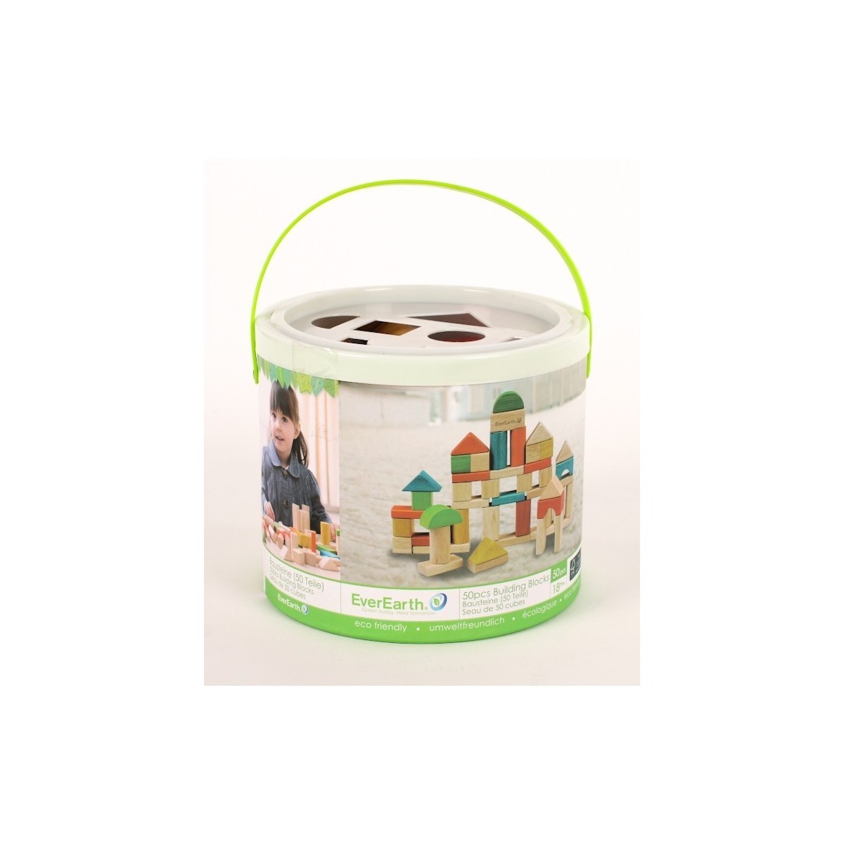 • Le seau s'utilise comme boîte de rangement, mais également comme trieur de formes grâce à son couvercle.