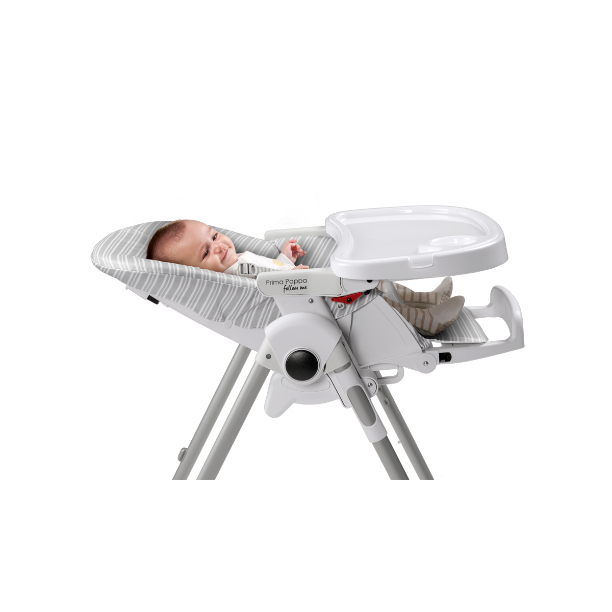 evolutive, la chaise haute prima pappa follow me est homologuée dès la naissance (en position transat) jusqu'à 36 mois (15 kg maximum).