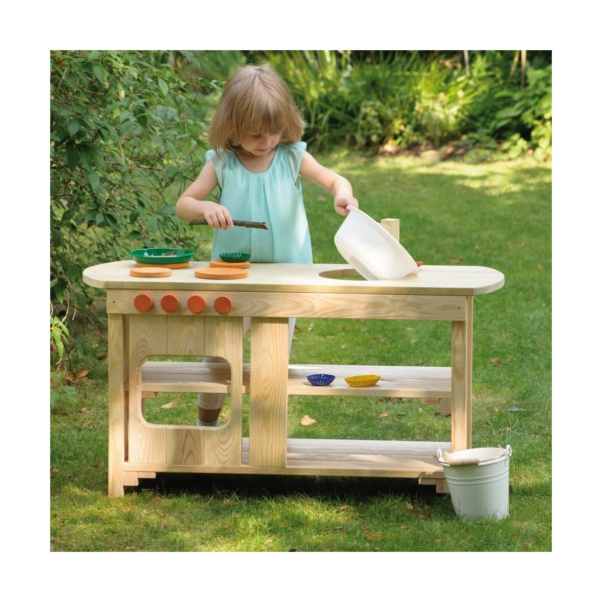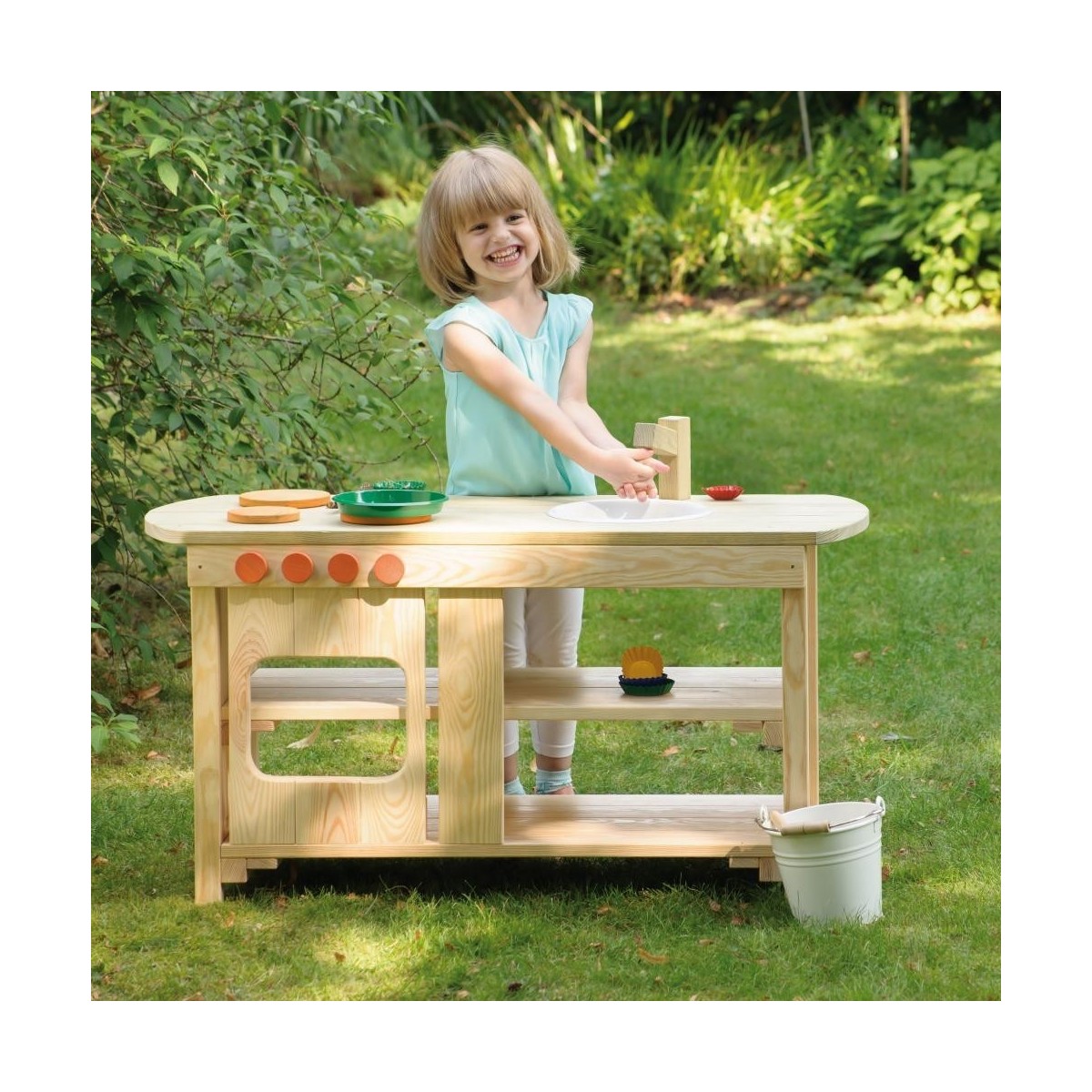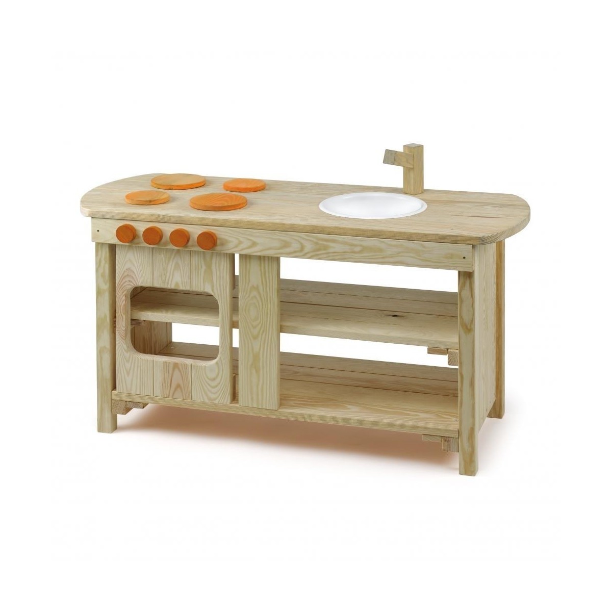 Avec la cuisine ludique d'extérieur Erzi, les enfants ont la possibilité de pratiquer ce superbe jeu de rôle dans le jardin. Des matériaux naturels peuvent être utilisés ici. La cuisine peut être utilisée des deux côtés et comprend une cuisinière, un évier et de nombreux espaces de rangement. La cuisine est livrée imprégnée.