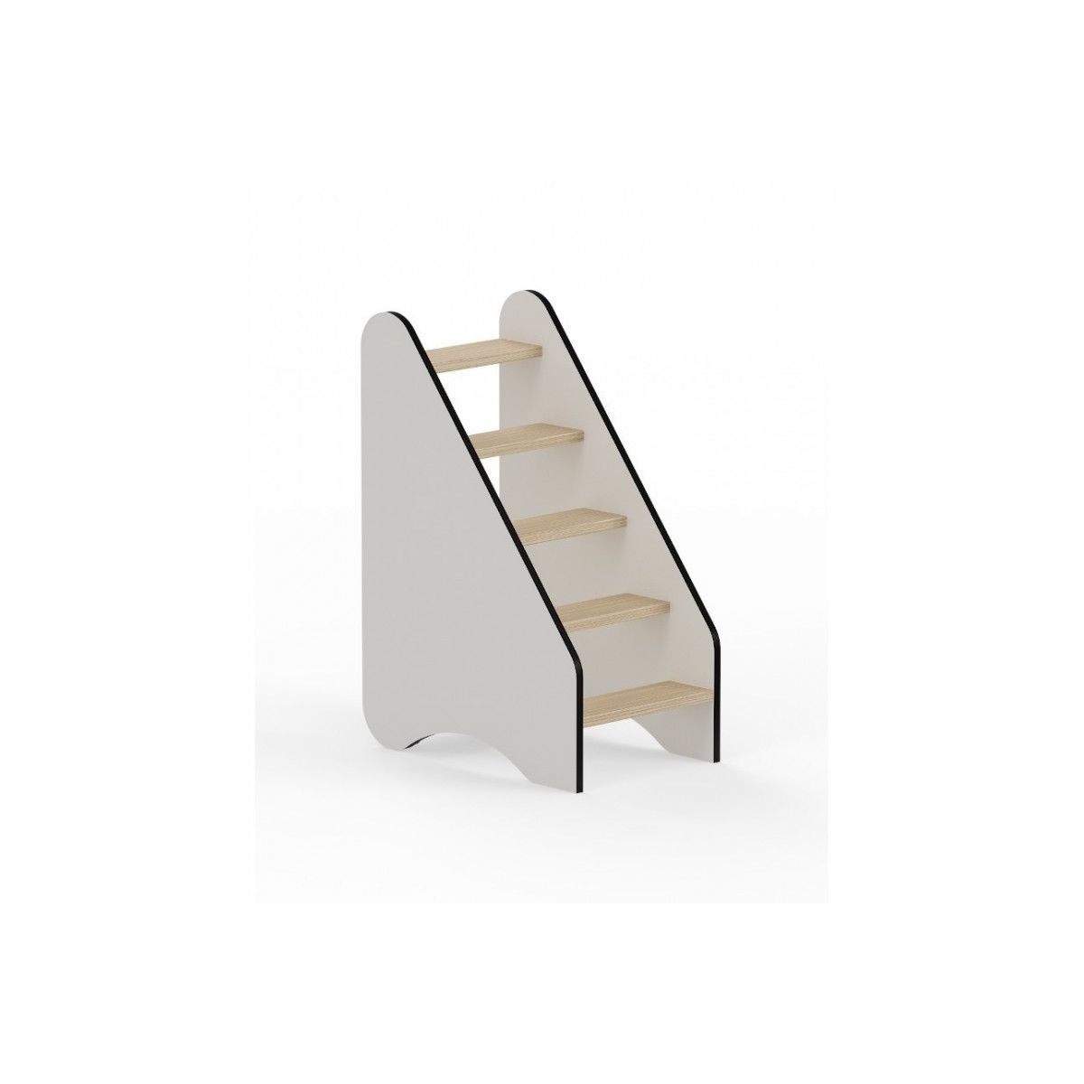 • Cotés blancs et marches ton bois nordique.