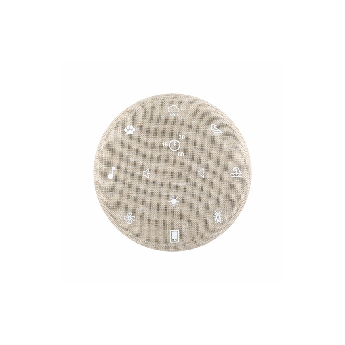 Un son apaisant peut durer 15, 30 ou 60 min. Une fois le programme terminé, le produit s’éteint automatiquement (son et lumière)