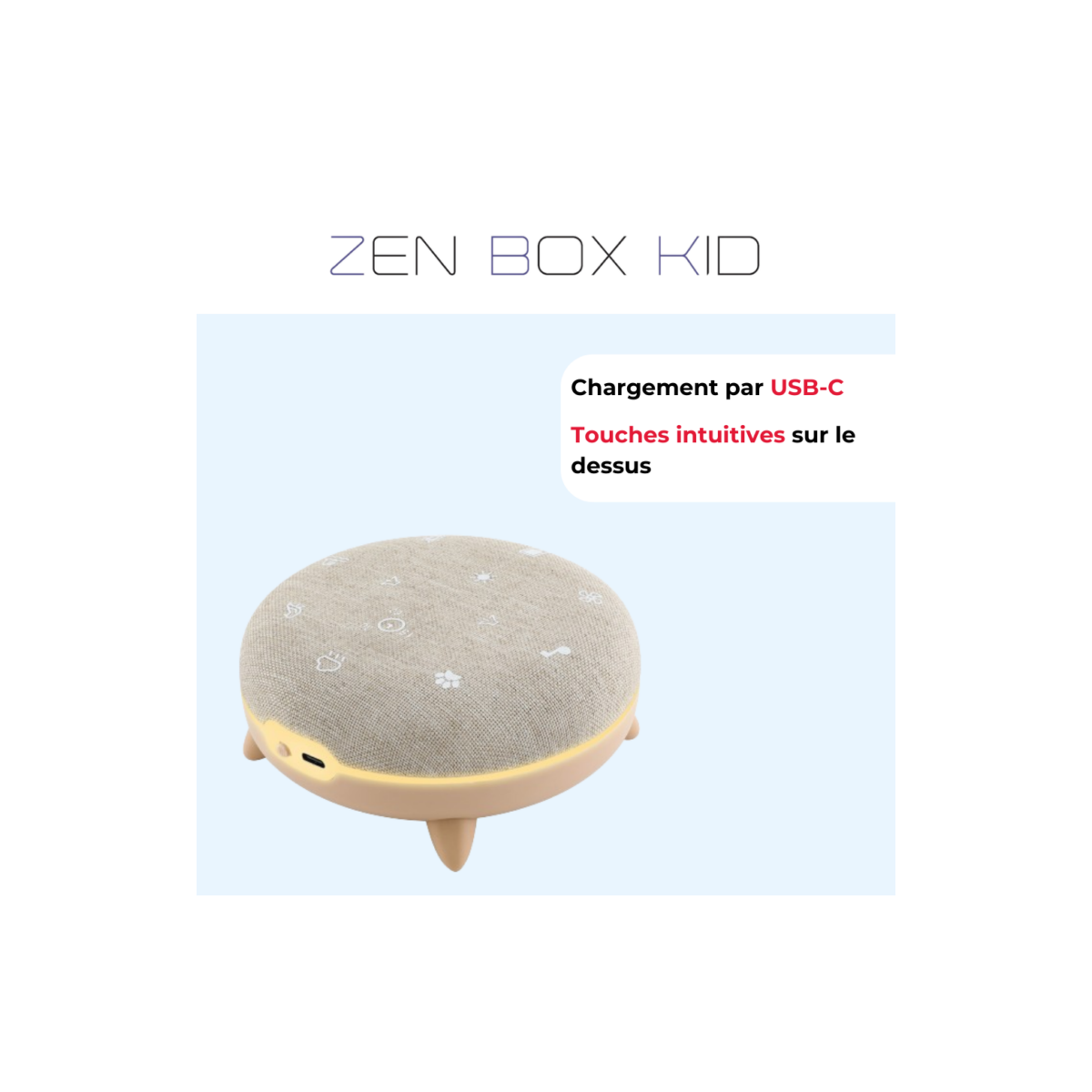 ● Zen Box Kid est rechargeable et nomade (livré avec câble USB-C).