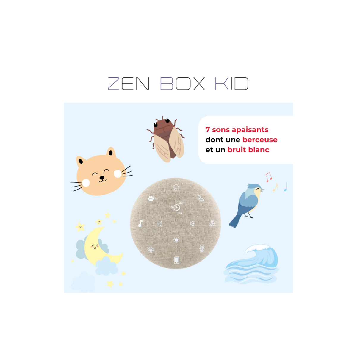 Bienvenue dans l'univers apaisant de Zen Box Kid, votre allié pour des moments de relaxation et d'endormissement doux et sereins pour vos enfants.