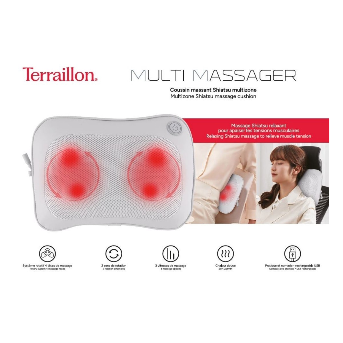 Le Multi Massager alterne automatiquement les mouvements pour stimuler la circulation sanguine et améliorer l'efficacité du massage. L'option chauffante complète le massage en relaxant davantage les muscles et en améliorant le bien-être général.
