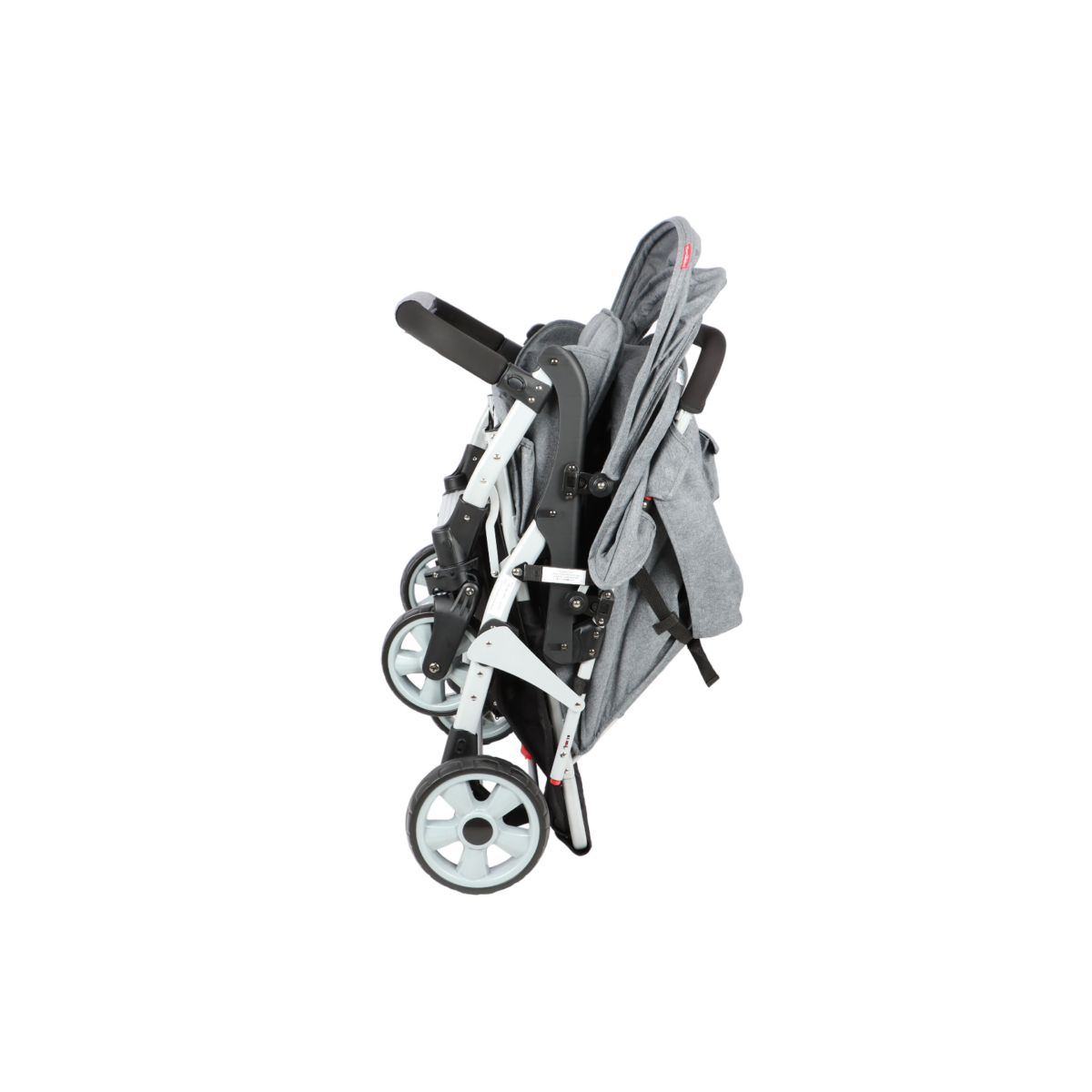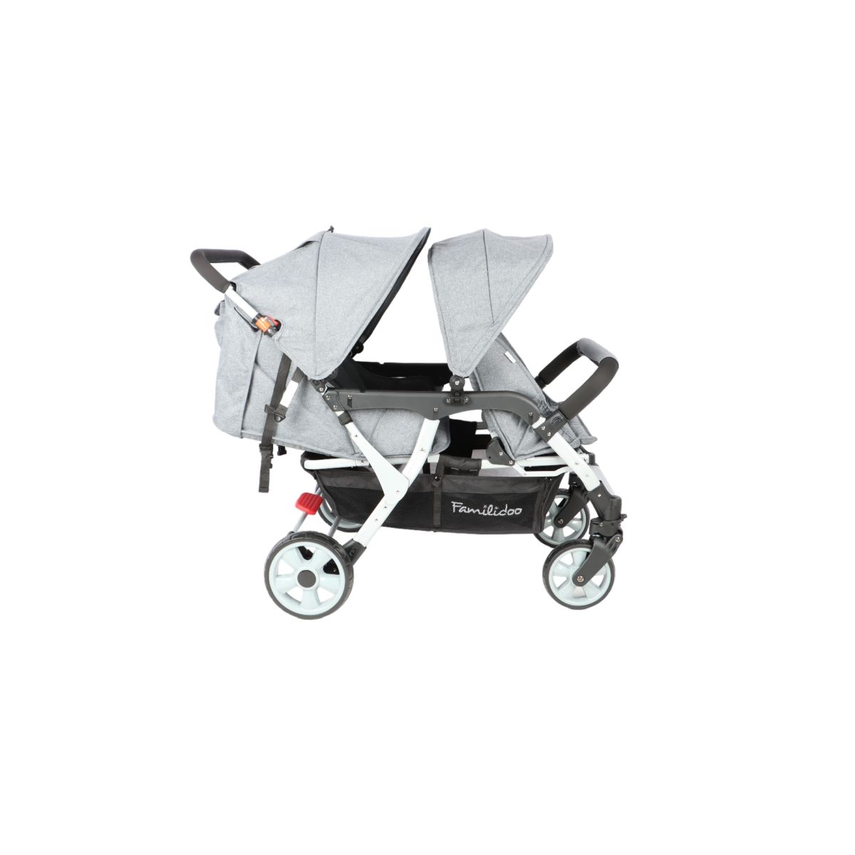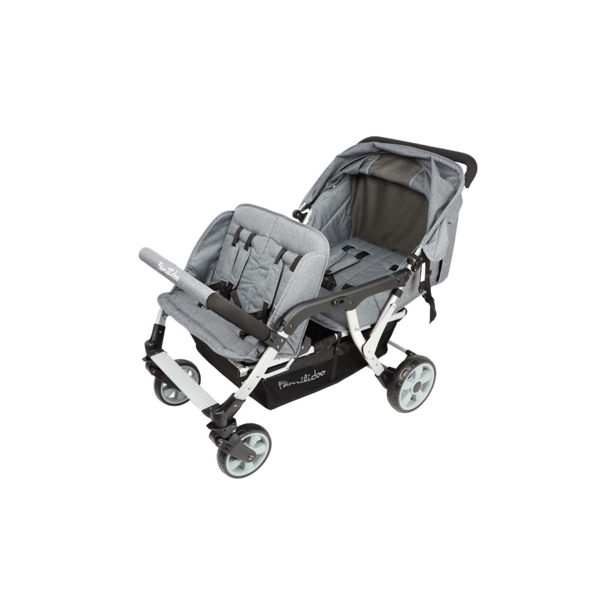 La Lidoo City BB est une poussette 4 places urbaine légère et compacte. Elle accueille 2 enfants dès la naissance sur la banquette arrière et 2 enfants à partir de 6 mois à l’avant. Sa largeur de 79.5 cm (+/- 0.5 cm) lui permet d’entrer dans les ascenseurs (ouverture de porte minimum 80 cm nécessaire). Les banquettes sont normées pour recevoir 2 enfants de 15 kg maximum à l’avant et à l’arrière. Elle est ultra maniable, avec ses blocs roues avant équipés d’amortisseurs.